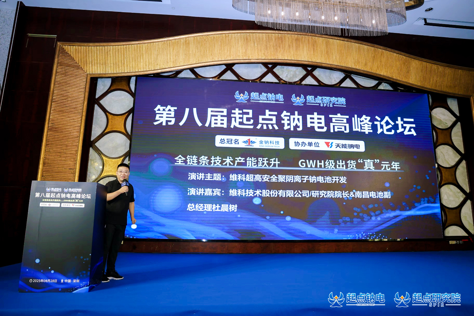 2025 年 8 月 28 日,由起點(diǎn)鈉電主辦的第八屆起點(diǎn)鈉電高峰論壇在深圳市維納斯皇家酒店隆重舉行。本次論壇以“全鏈條技術(shù)產(chǎn)能躍升GWH 級(jí)出貨‘真’元年”為主題,聚焦鈉電全鏈條技術(shù)突破路徑與產(chǎn)業(yè)化落地的關(guān)鍵方向。維科技術(shù)憑借突出的市場表現(xiàn)與技術(shù)實(shí)力,在此次盛會(huì)上一舉斬獲“2025H1中國鈉電池出貨量”與“2025H1中國聚陰離子鈉電池出貨量”兩大榜首并分享核心技術(shù)成果。