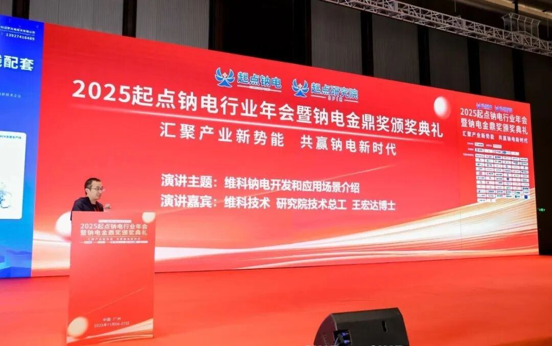 2025年11月6至7日,由起點(diǎn)鈉電主辦的2025起點(diǎn)鈉電行業(yè)年會(huì)暨鈉電金鼎獎(jiǎng)?lì)C獎(jiǎng)典禮在廣州南沙國(guó)際會(huì)展中心隆重舉行。維科技術(shù)憑借“2025全球鈉電池”與“2025全球聚陰離子鈉電池”出貨量雙榜首的卓越表現(xiàn),榮獲“2025年度中國(guó)鈉電池電芯技術(shù)領(lǐng)導(dǎo)品牌”獎(jiǎng)。同時(shí),維科技術(shù)受邀發(fā)表主題演講,分享了公司在聚陰離子鈉電池領(lǐng)域的突破性成果。